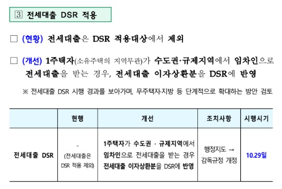 또한 전세대출 이자가 DSR(총부채원리금상환비율)에 반영되어 대출 가능 금액이 축소됩니다. 스트레스 금리도 3% 이상으로 높아져 대출 심사가 더욱 엄격해졌습니다.