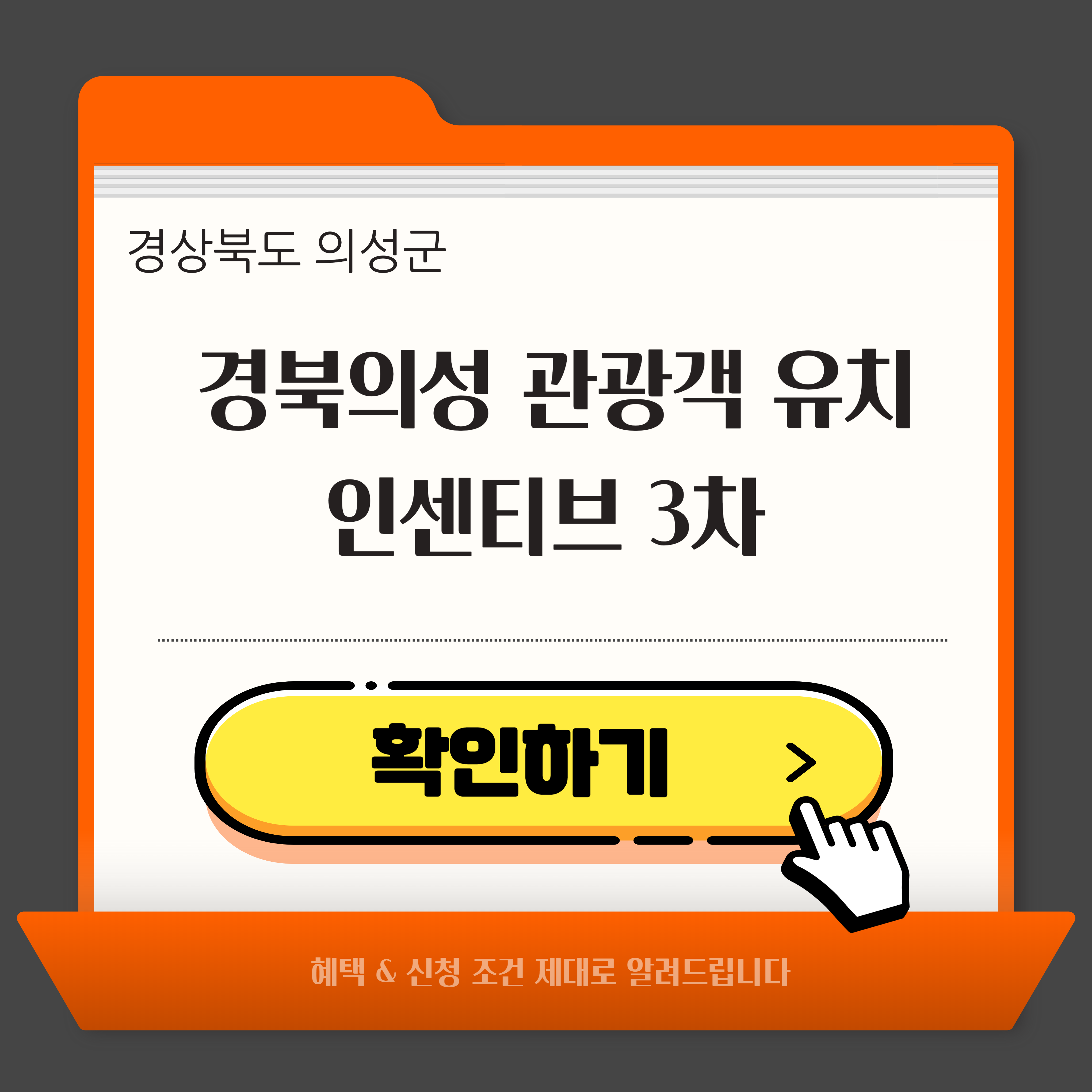 경북 의성 관광객 유치 인센티브 3차 는 타지역 관광객과 여행사를 대상으로 숙박·식사·관광지 방문에 따라 실사용 경비를 보전해 주는 지역 관광 활성화 정책입니다. 개인·단체 모두 참여할 수 있고, 조건을 충족하면 최대 35만 원까지 혜택을 받을 수 있어 의성 여행의 가성비를 극대화할 수 있습니다. 가성비 좋은 체류형 여행을 계획하고 있다면 오늘 바로 경북 의성 관광객 유치 인센티브 3차 신청 준비를 시작하세요. → 신청방법 바로확인하기 ← "> → 신청방법 바로확인하기 ← 1. 경북 의성 관광객 유치 인센티브 3차 개요경북 의성 관광객 유치 인센티브 3차 는 ‘의성 방문의 해’ 흐름에 맞춰 체류형 소비를 늘리고, 숙박·식당·관광지 연계를 통해 지역경제에 직접적인 매출을 일으키는 것을..